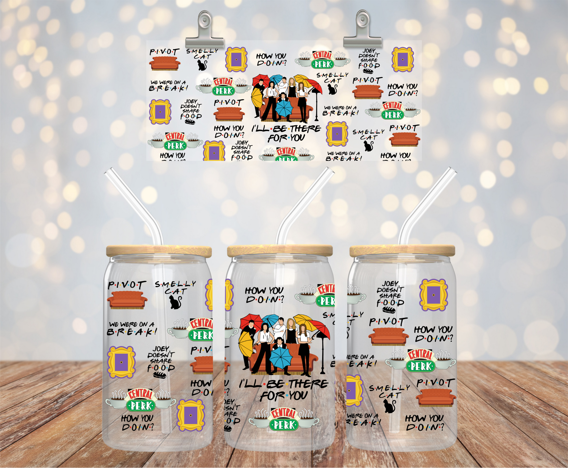 FRIENDS 16 OZ GLASS CUP WITH BAMBOO LID/STRAW